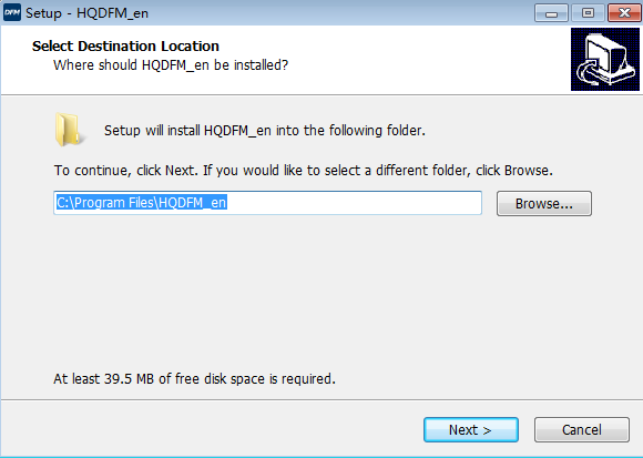 Run the installation program "HQDFM_Setup.exe", and select the installation path (you can custom the installation path). Click "Next" to run the installation program, and you will complete the installation. (see pic 4.1.2)